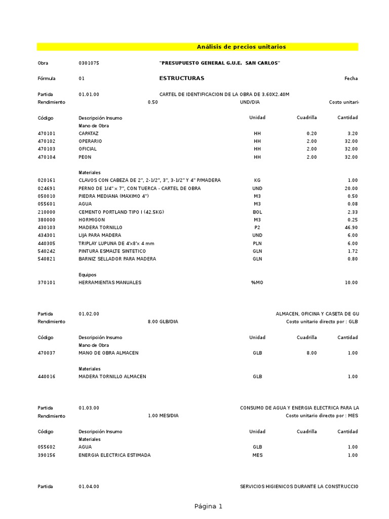 Anlisis de precios unitarios