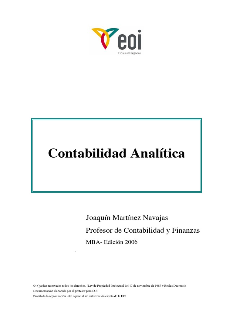 empresa. La contabilidad analtica es principalmente un conjunto de tcnicas que