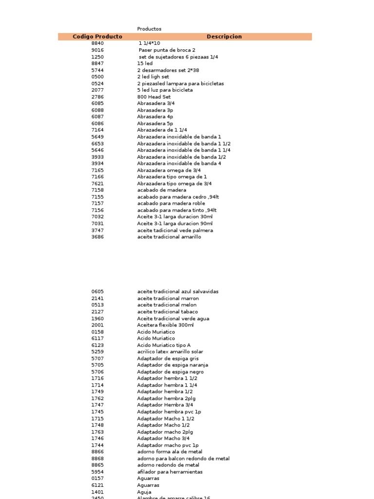 Codigo Producto Descripcion Marca Unidad De Media