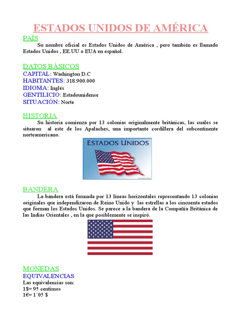 Su nombre oficial es Estados Unidos de Amrica , pero tambin es llamado
