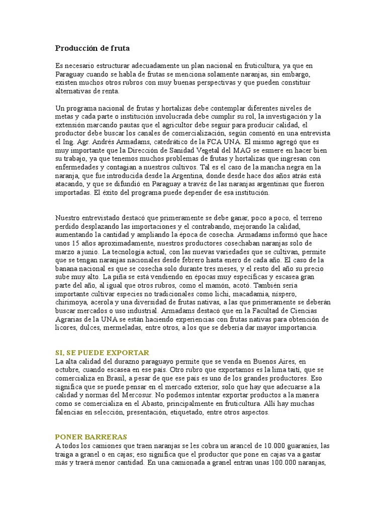 Paraguay cuando se habla de frutas se menciona solamente naranjas, sin embargo,