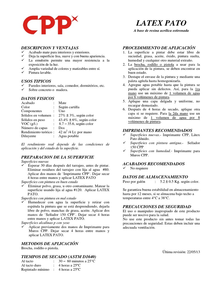 Diluyente : Agua potable Superficies nuevas.- Imprimante CPP, Ltex