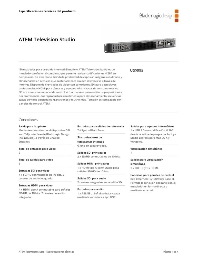 ATEM Television Studio - Especificaciones tcnicas Pgina 1 de 4