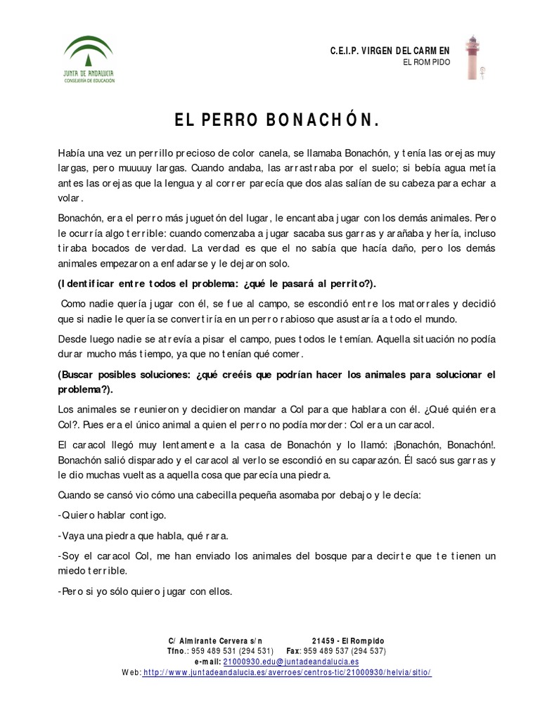Haba una vez un perrillo precioso de color canela, se llamaba Bonachn, y tena las orejas muy
