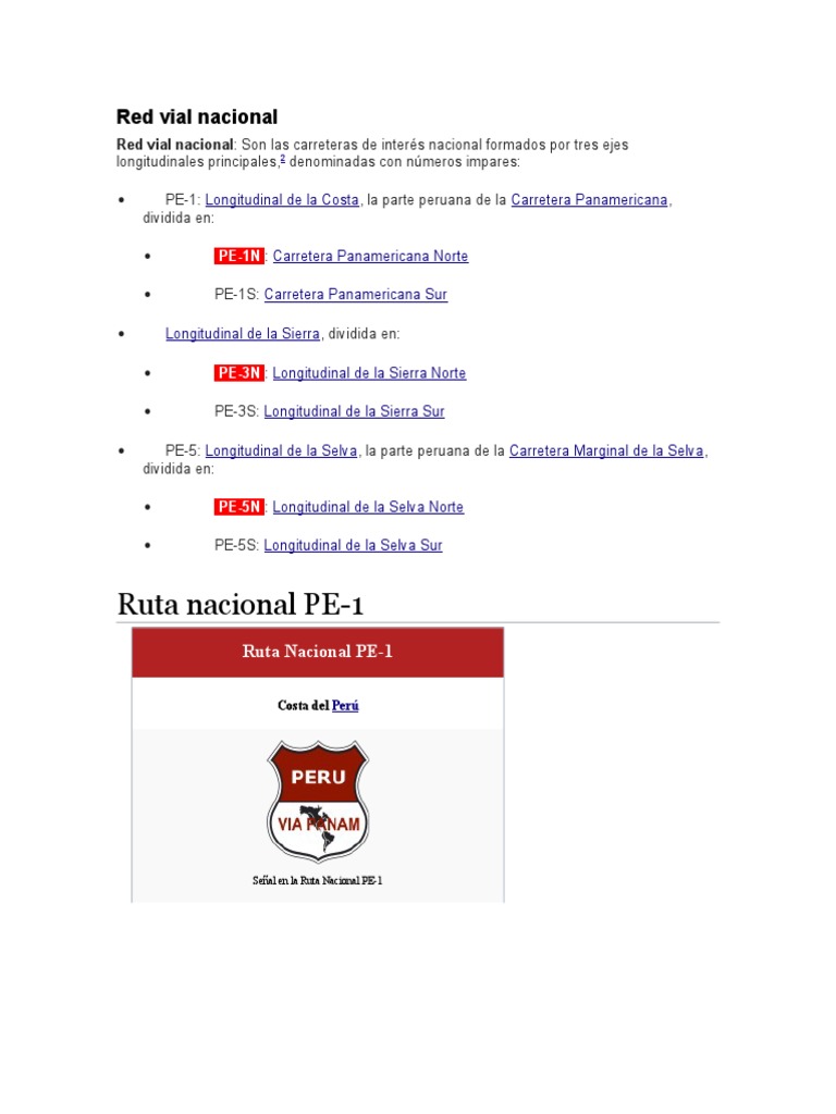 Red vial nacional: Son las carreteras de inters nacional formados por tres ejes