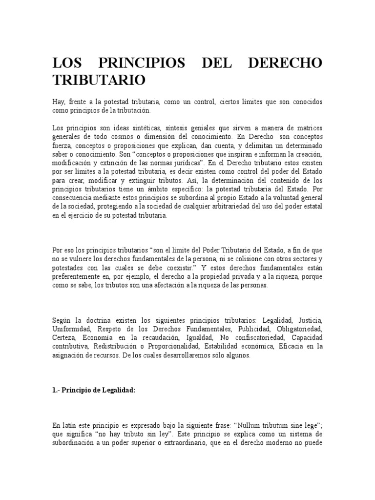 Segn la doctrina existen los siguientes principios tributarios: Legalidad, Justicia,