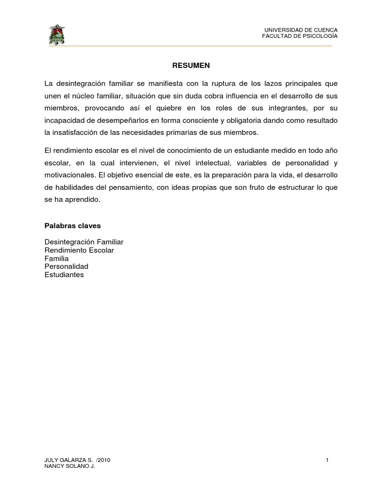 DESINTEGRACIN FAMILIAR ASOCIADA AL BAJO RENDIMIENTO ESCOLAR