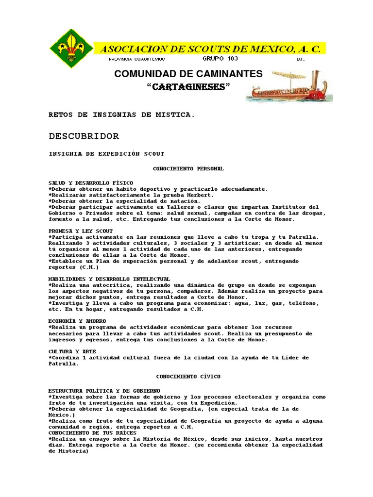 miembro nuevo de la expedicin o en su defecto a tu Lder de Patrulla.