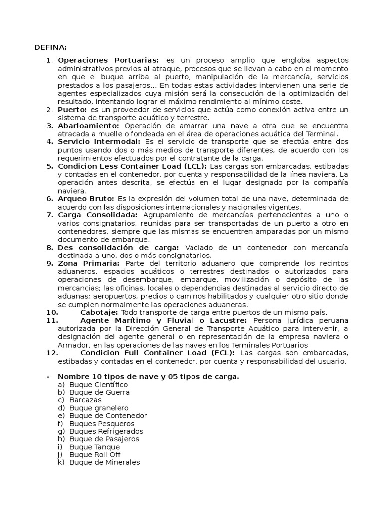 1. Operaciones Portuarias: es un proceso amplio que engloba aspectos