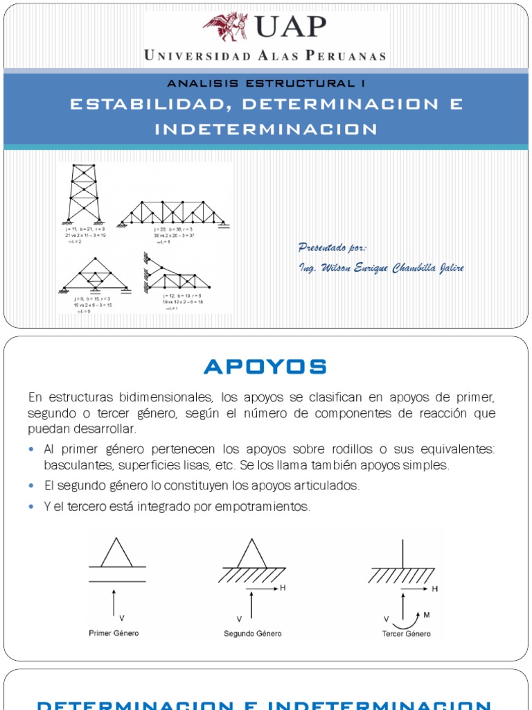 En estructuras bidimensionales, los apoyos se clasifican en apoyos de primer,