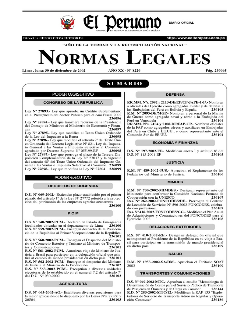 Pg. 236094 NORMAS LEGALES Lima, lunes 30 de diciembre de 2002