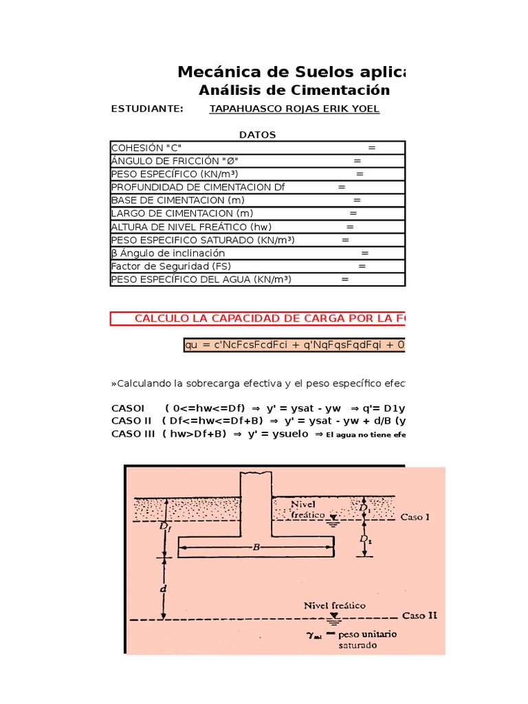 CASO III ( hw>Df+B) y' = ysuelo El agua no tiene efecto sobre la capacidad ultima d