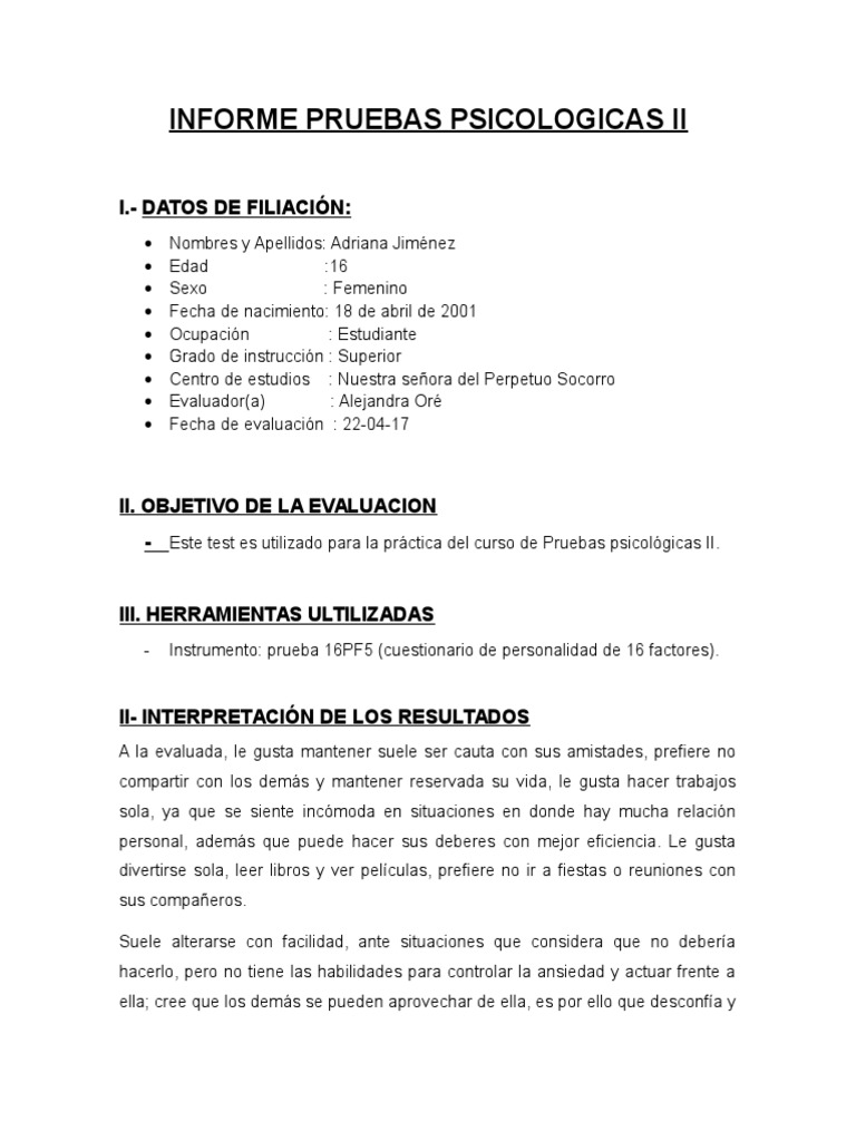 INFORME PRUEBAS PSICOLOGICAS II