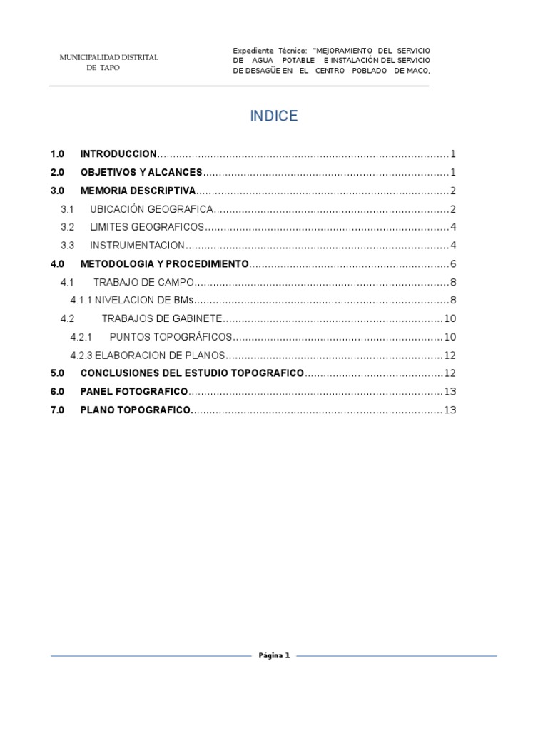 topogrfico realizado en el CENTRO POBLADO DE MACO. (Ver Anexo 1)