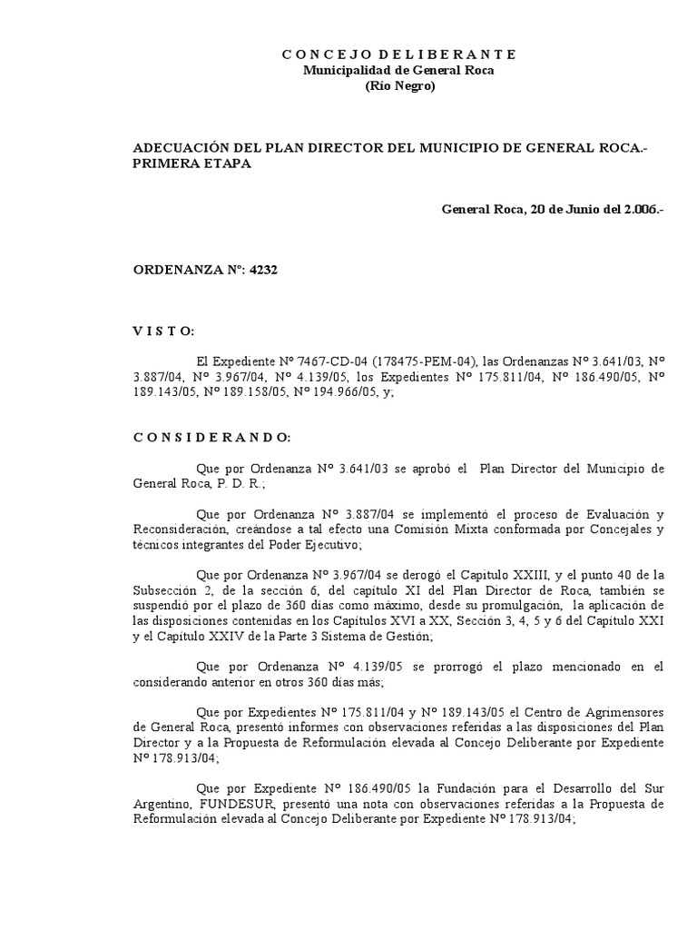 del Plan Director de General Roca.