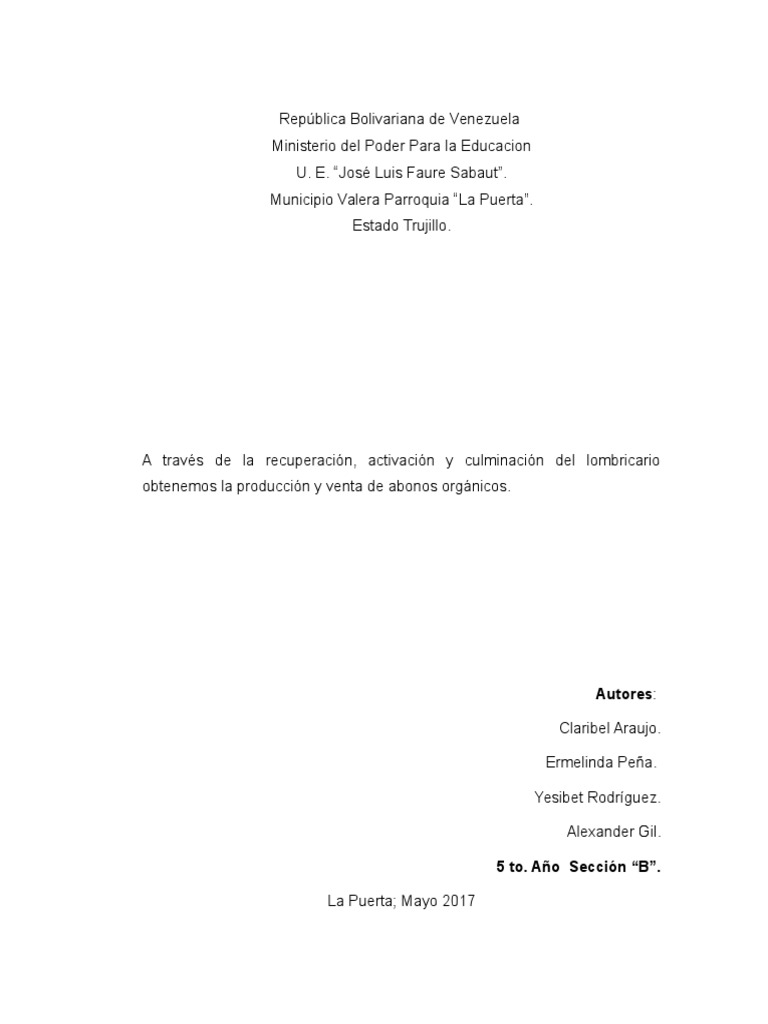 activacin del lombricario en la U.E Jos Luis Faure Sabaut