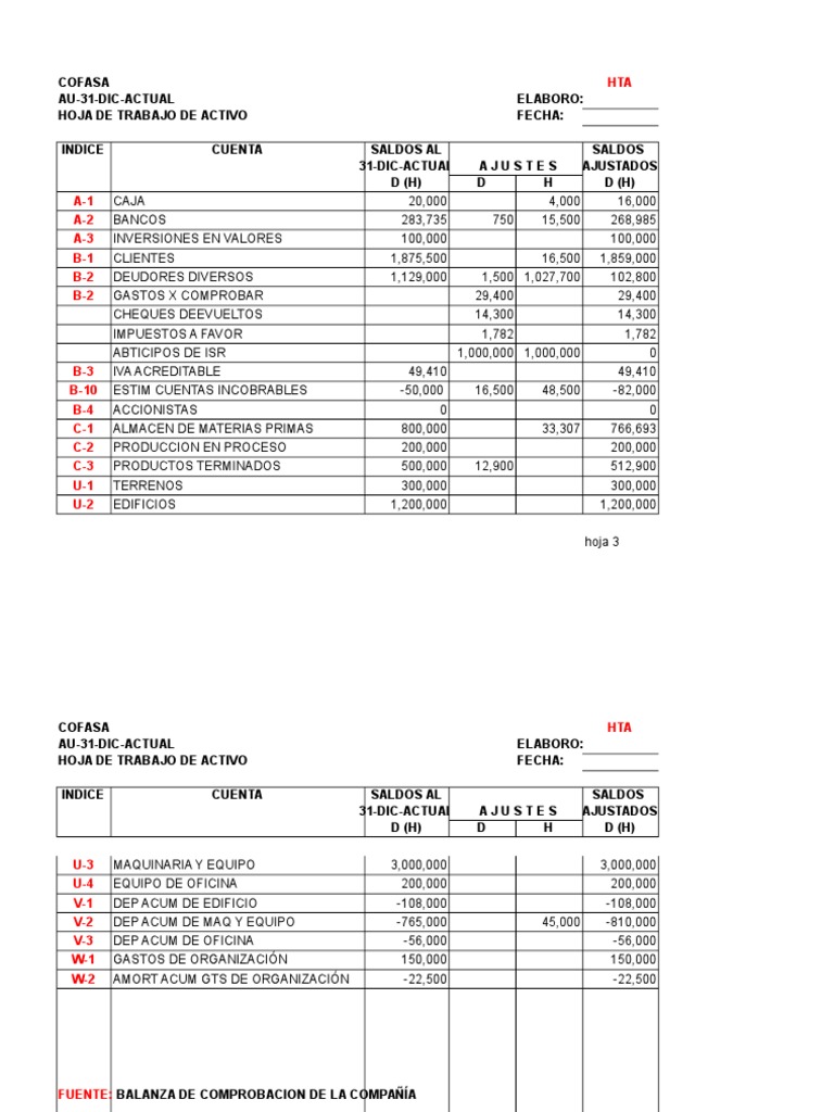 HOJA DE TRABAJO DE ACTIVO FECHA: