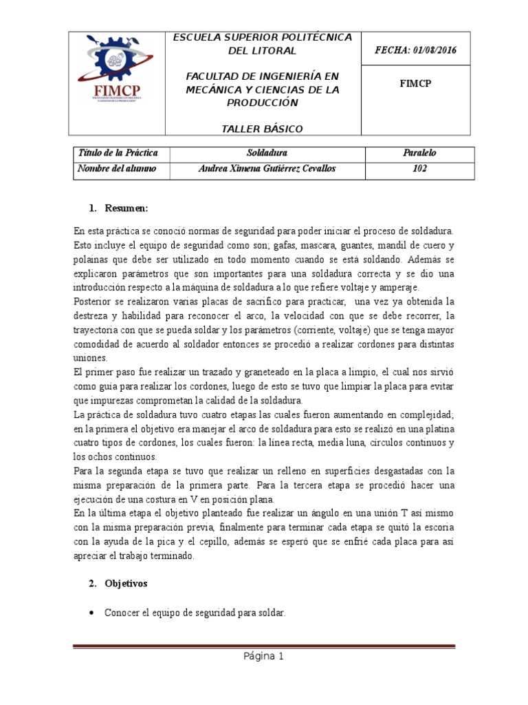 en la primera el objetivo era manejar el arco de soldadura para esto se realiz en una platina
