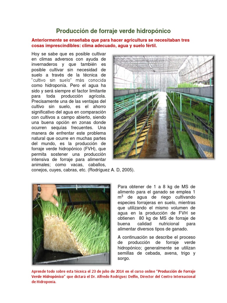 - Alfredo Rodrguez Delfn (2005). Produccin de Forraje Verde hidropnico (FVH). Boletn