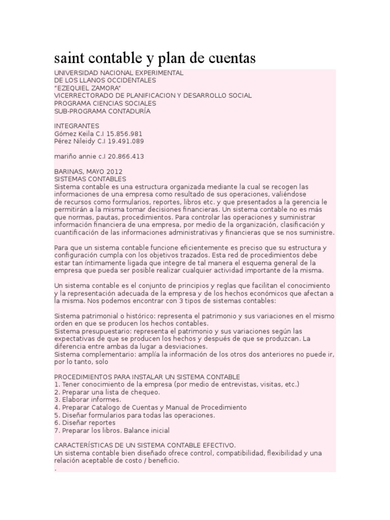 saint contable y plan de cuentas