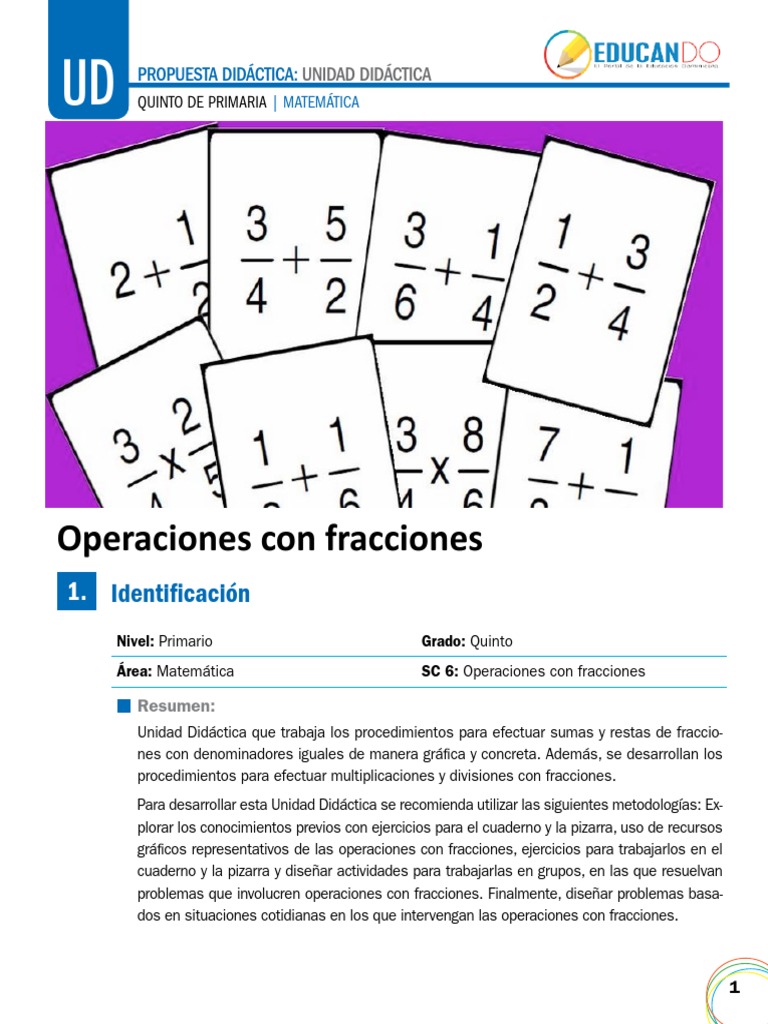 Unidad Didctica que trabaja los procedimientos para efectuar sumas y restas de fraccio-