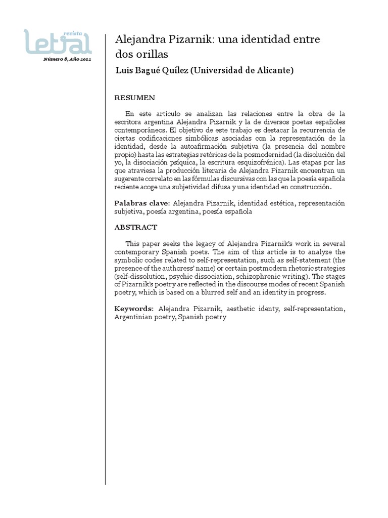 Keywords: Alejandra Pizarnik, aesthetic identy, self-representation,