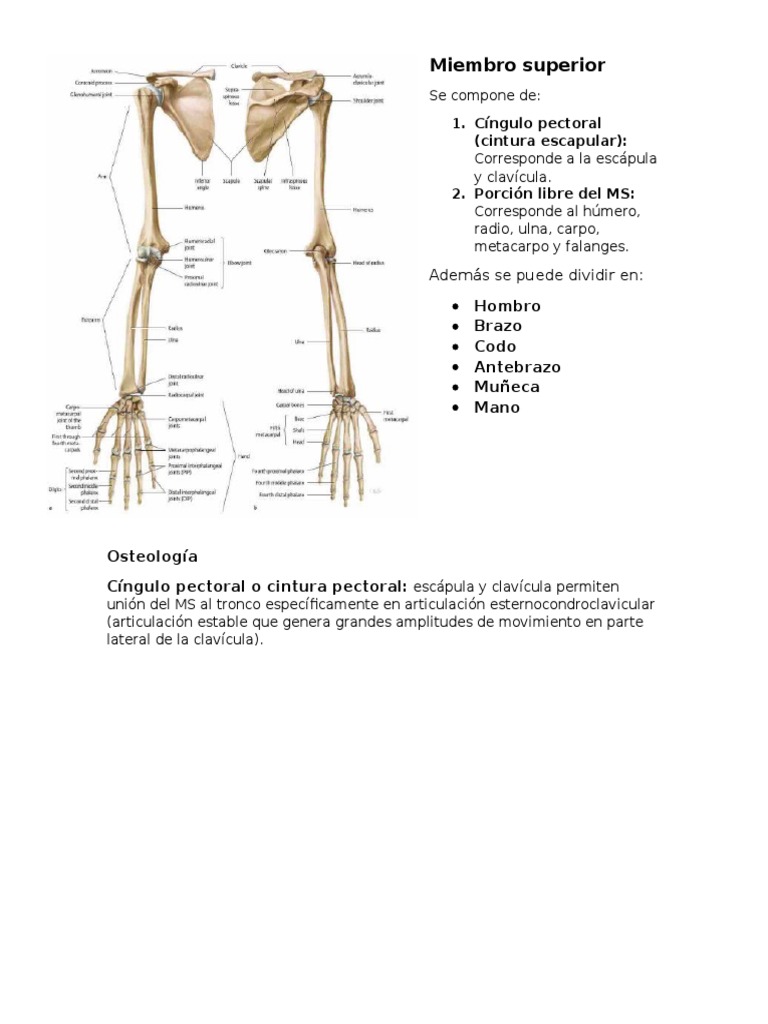 Cngulo pectoral o cintura pectoral: escpula y clavcula permiten