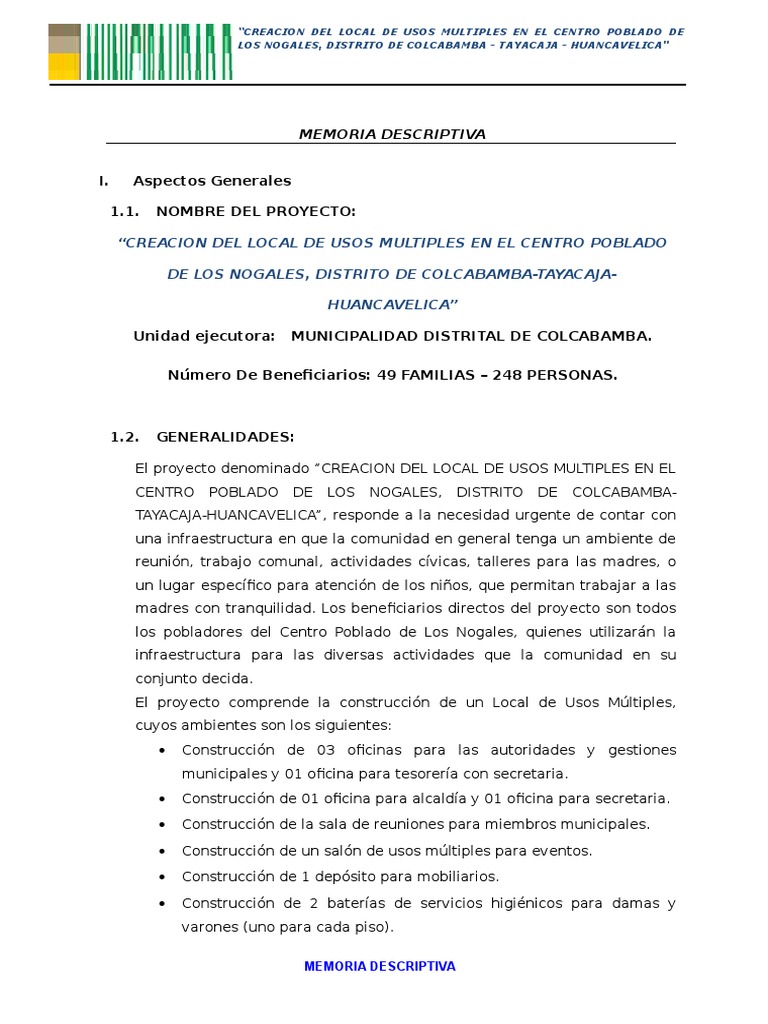 El proyecto comprende la construccin de un Local de Usos Mltiples,