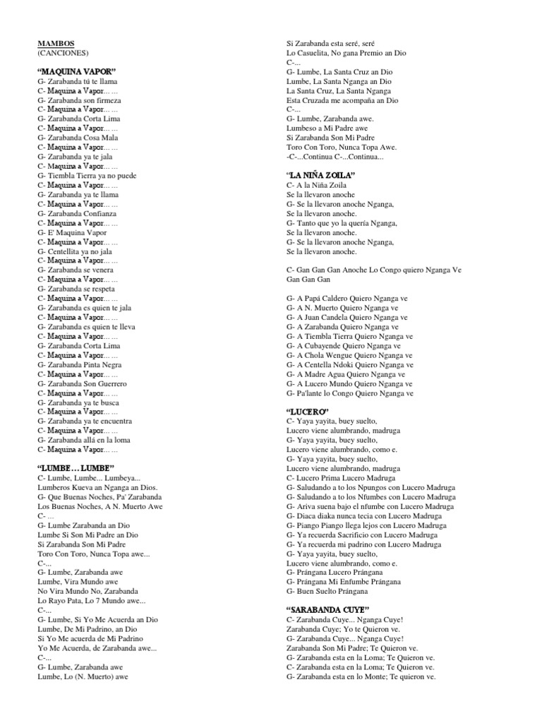 G- Lumbe, Si Yo Me Acuerda an Dio C- Zarabanda Cuye... Nganga Cuye!