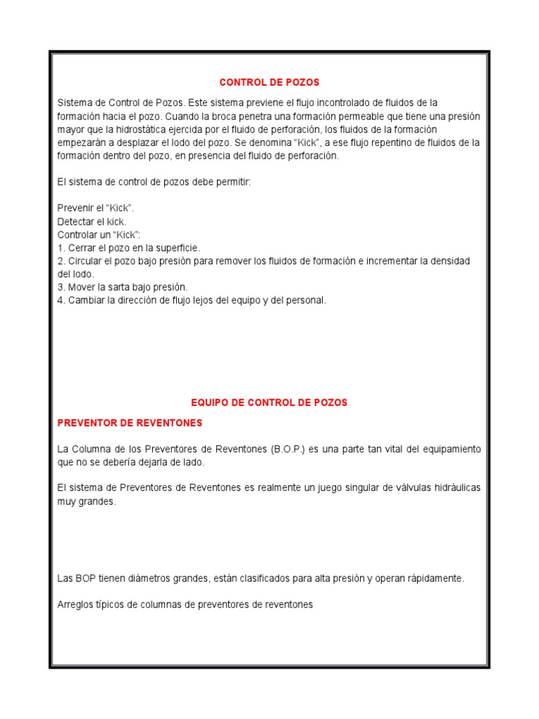 Sistema de Control de Pozos. Este sistema previene el flujo incontrolado de fluidos de la