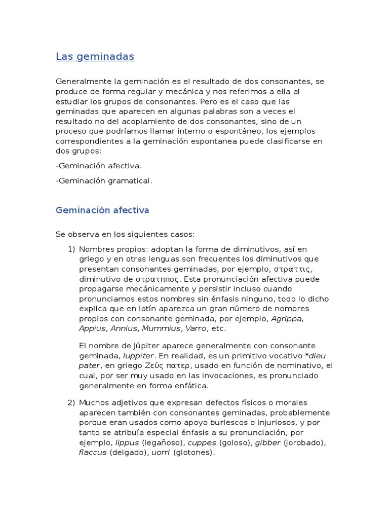 Las consonantes geminadas tienen, en virtud de un fenmeno de