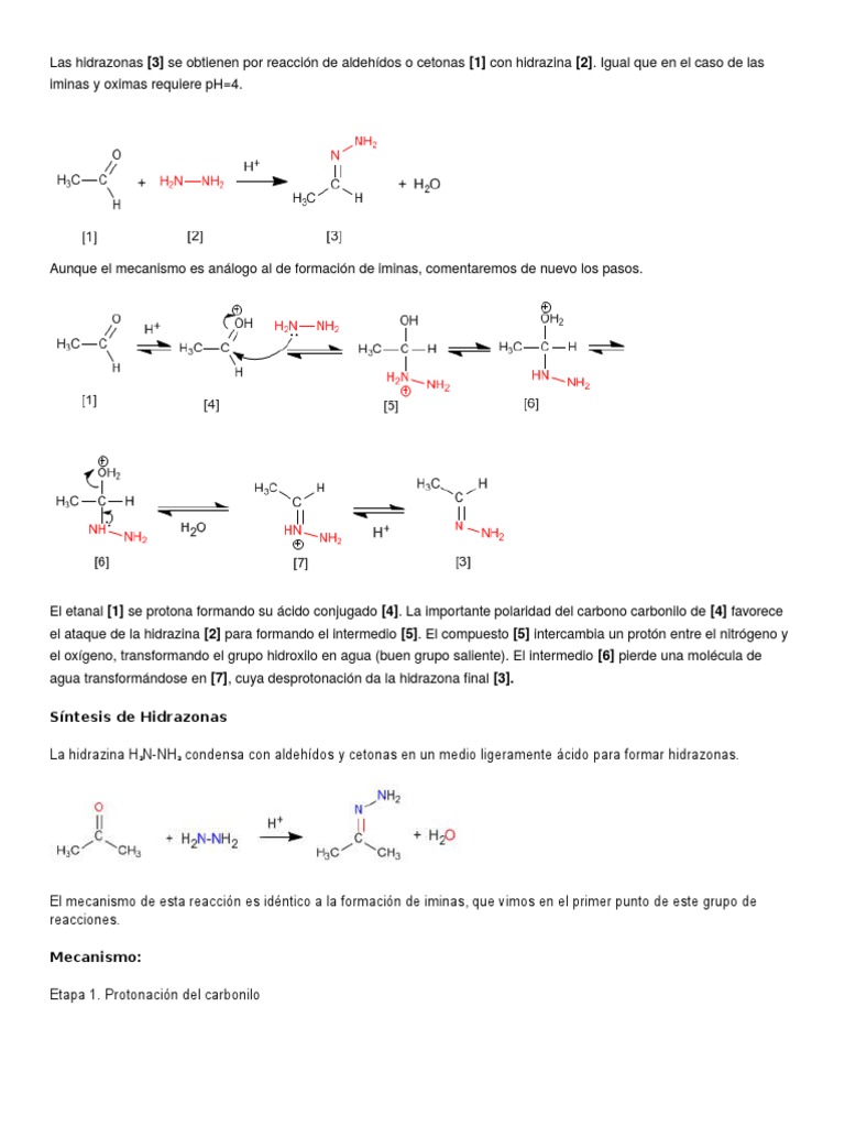agua transformndose en [7], cuya desprotonacin da la hidrazona final [3].
