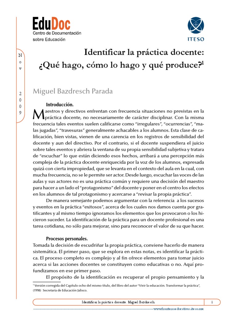 Identificar la prctica docente. Miguel Bazdresch. 1