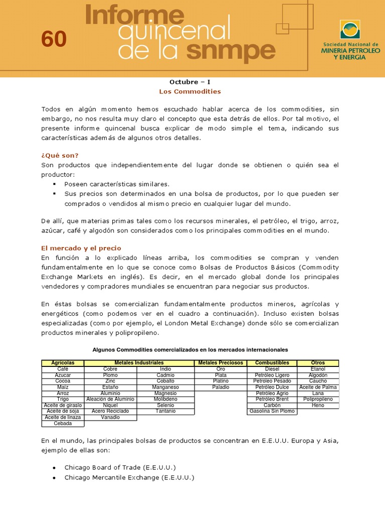 En funcin a lo explicado lneas arriba, los commodities se compran y venden