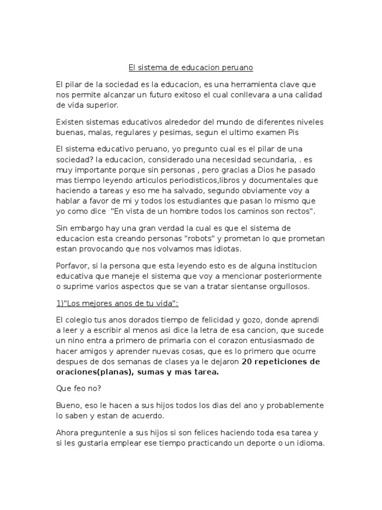 El sistema educativo peruano, yo pregunto cual es el pilar de una