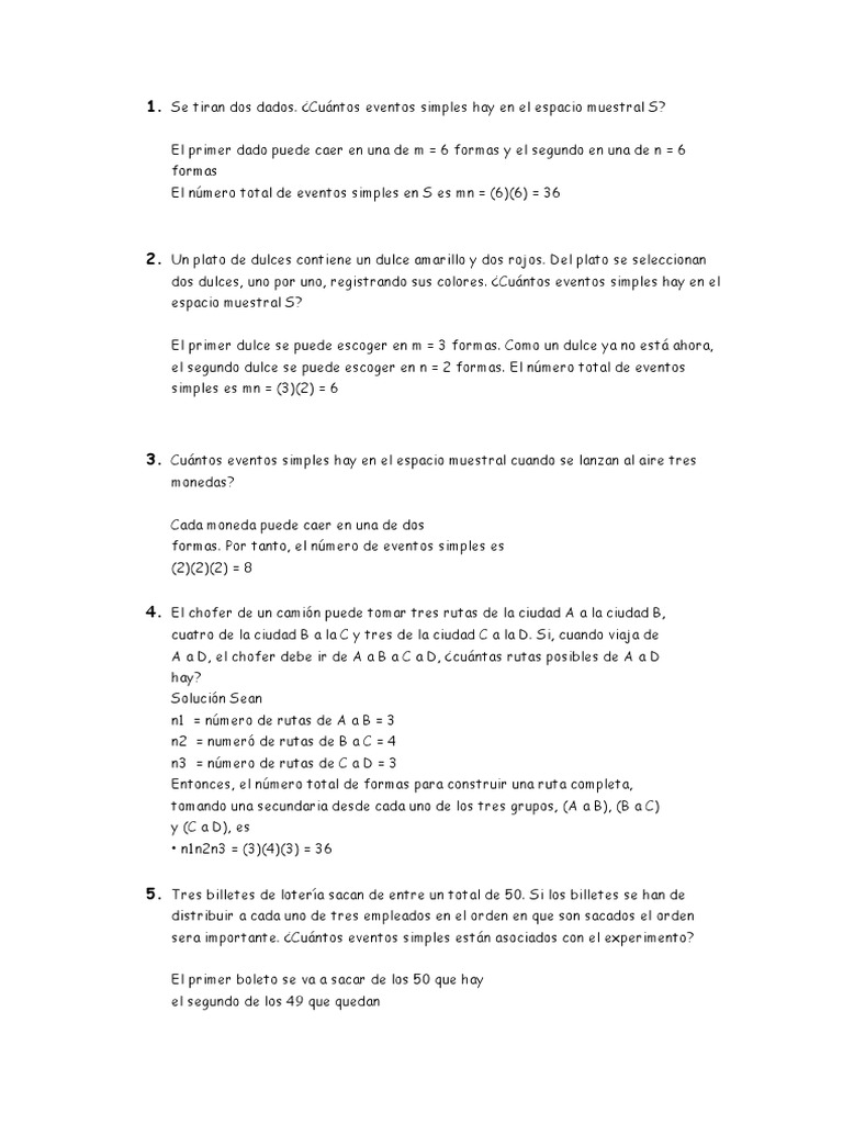1. Se tiran dos dados. Cuntos eventos simples hay en el espacio muestral S?