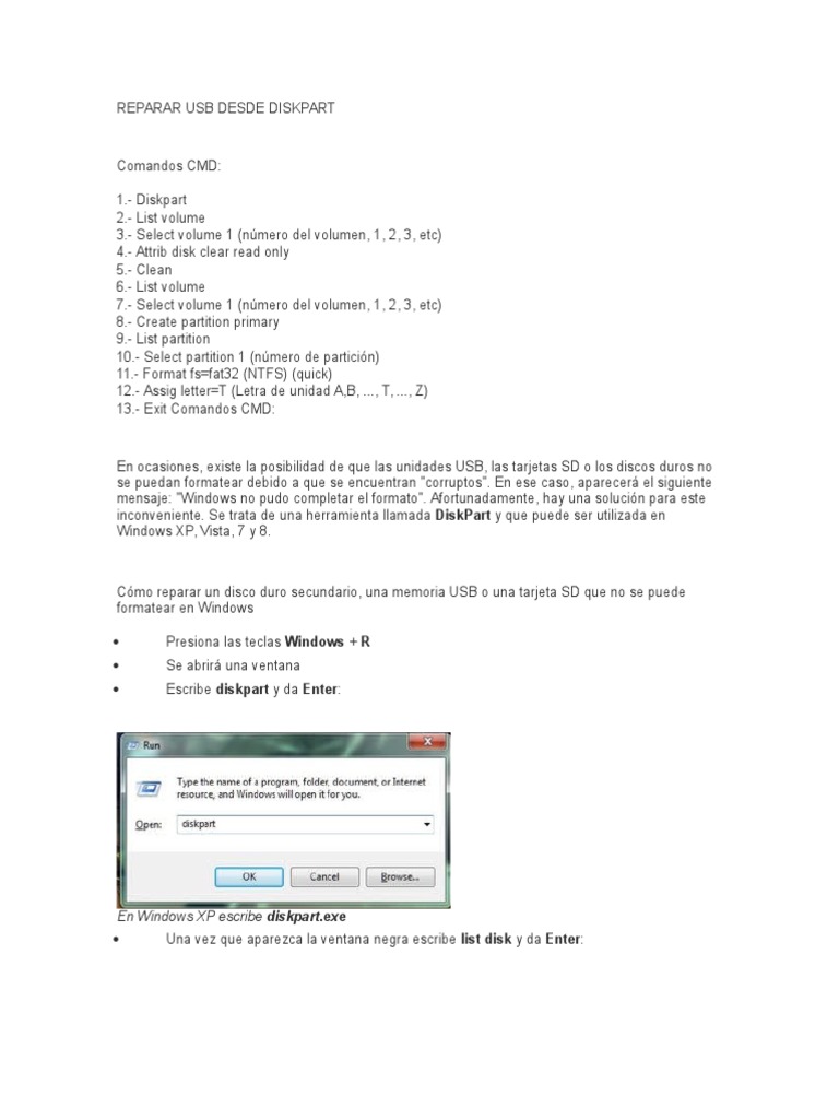 Mtodo para reparar una Memoria USB [usando diskpart]