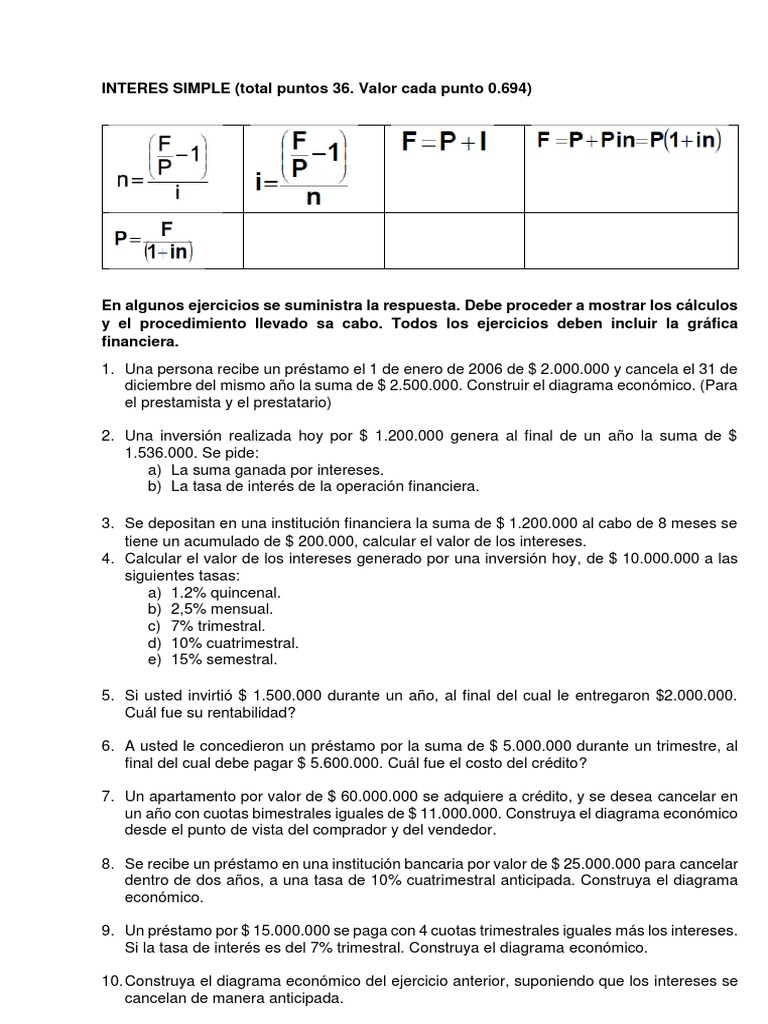 INTERES SIMPLE (total puntos 36. Valor cada punto 0.