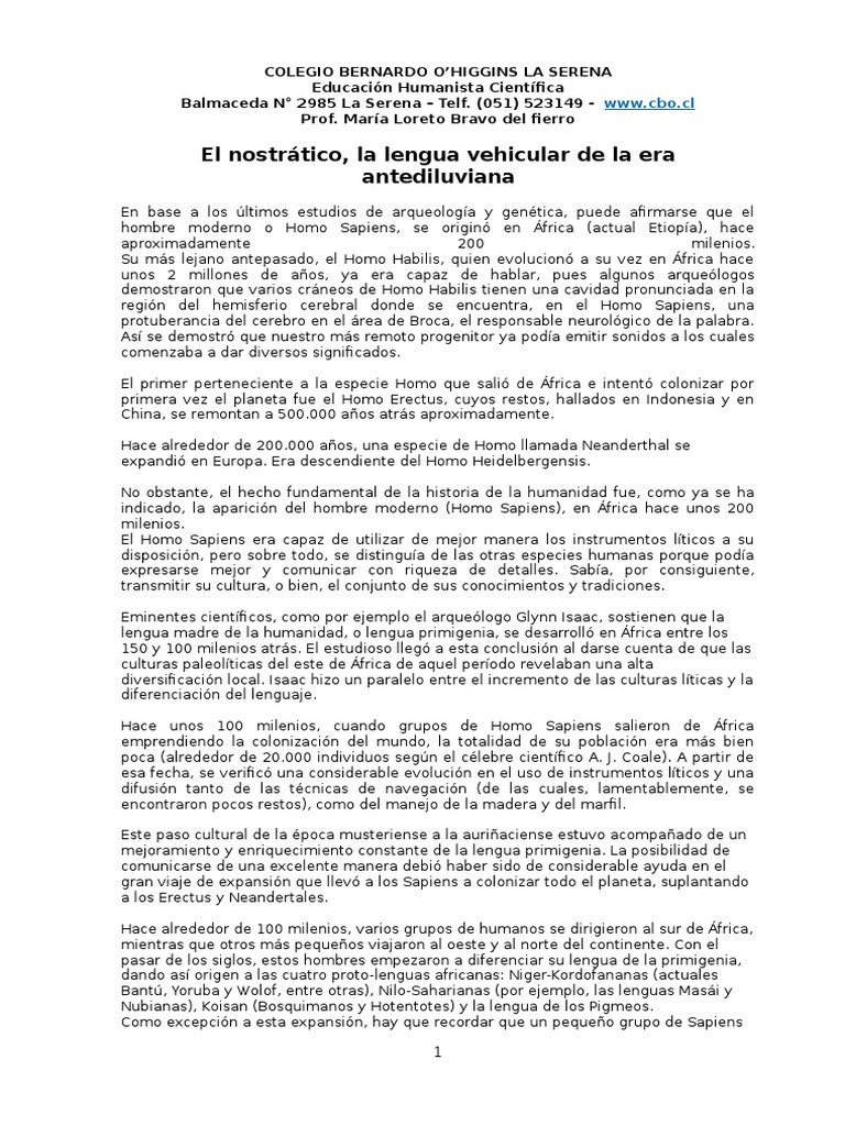 Si se acepta la teora de que el nostrtico fue la lengua madre de las familias