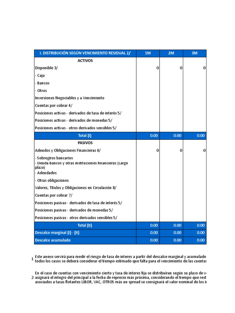 1 Este anexo servir para medir el riesgo de tasa de interes a partir del descalce marginal y acumulado producto de la d