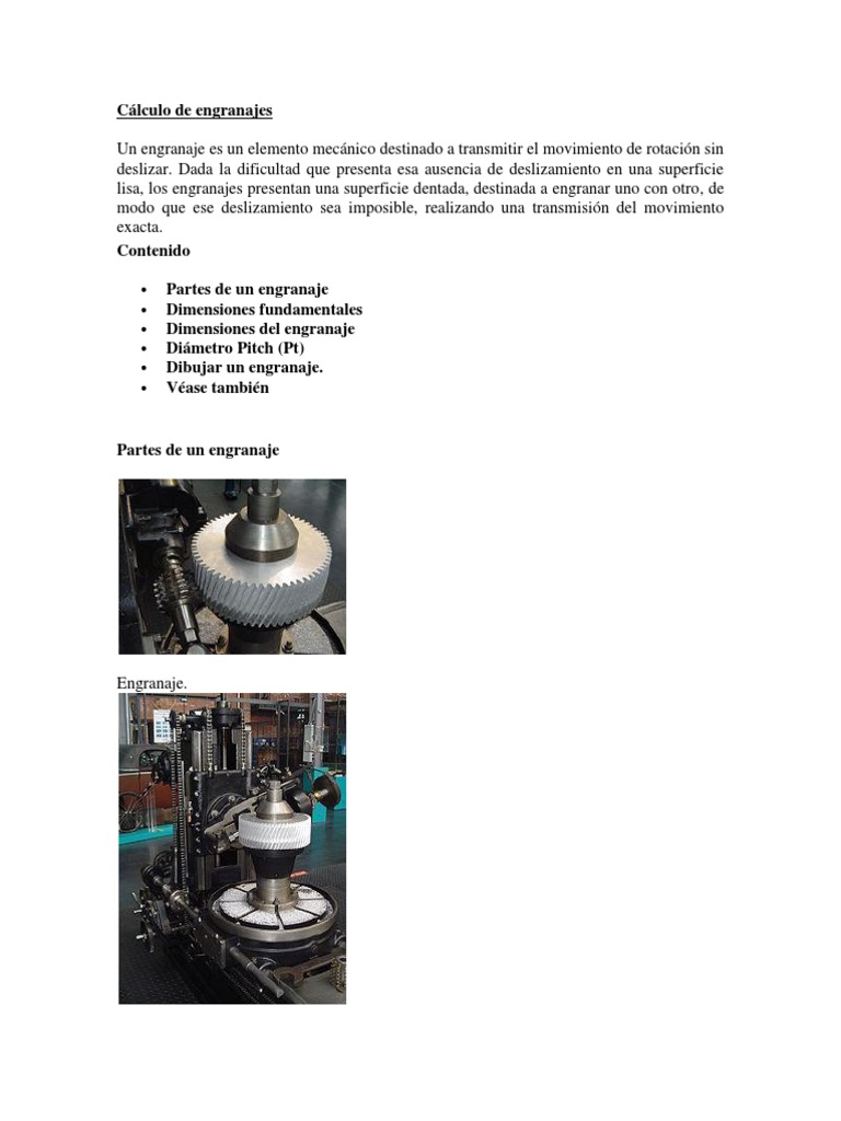 Un engranaje es un elemento mecnico destinado a transmitir el movimiento de rotacin sin