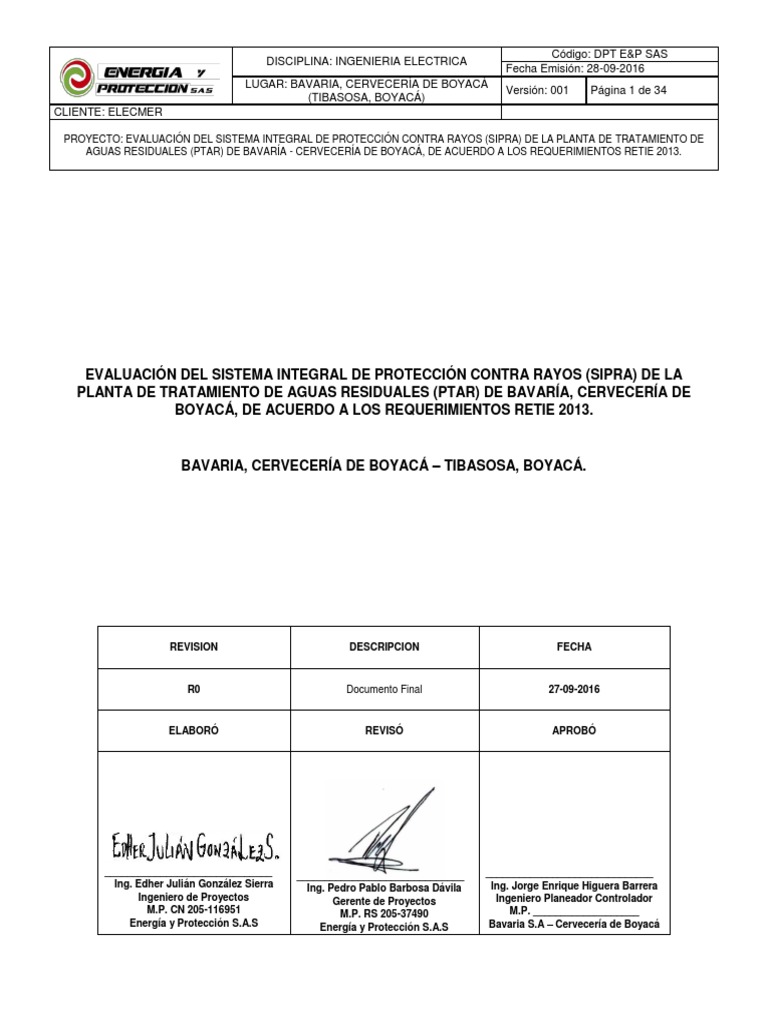 PROYECTO: EVALUACIN DEL SISTEMA INTEGRAL DE PROTECCIN CONTRA RAYOS (SIPRA) DE LA PLANTA DE TRATAMIENTO DE