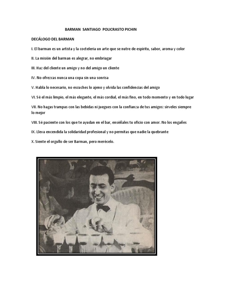 I. El barman es un artista y la cocteleria un arte que se nutre de espritu, sabor, aroma y color