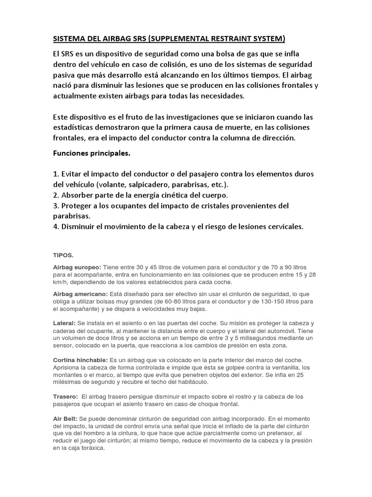 SISTEMA DEL AIRBAG SRS (SUPPLEMENTAL RESTRAINT SYSTEM)
