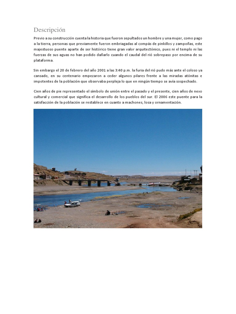 del siglo pasado. Permita sortear las aguas del ro Ilave (en