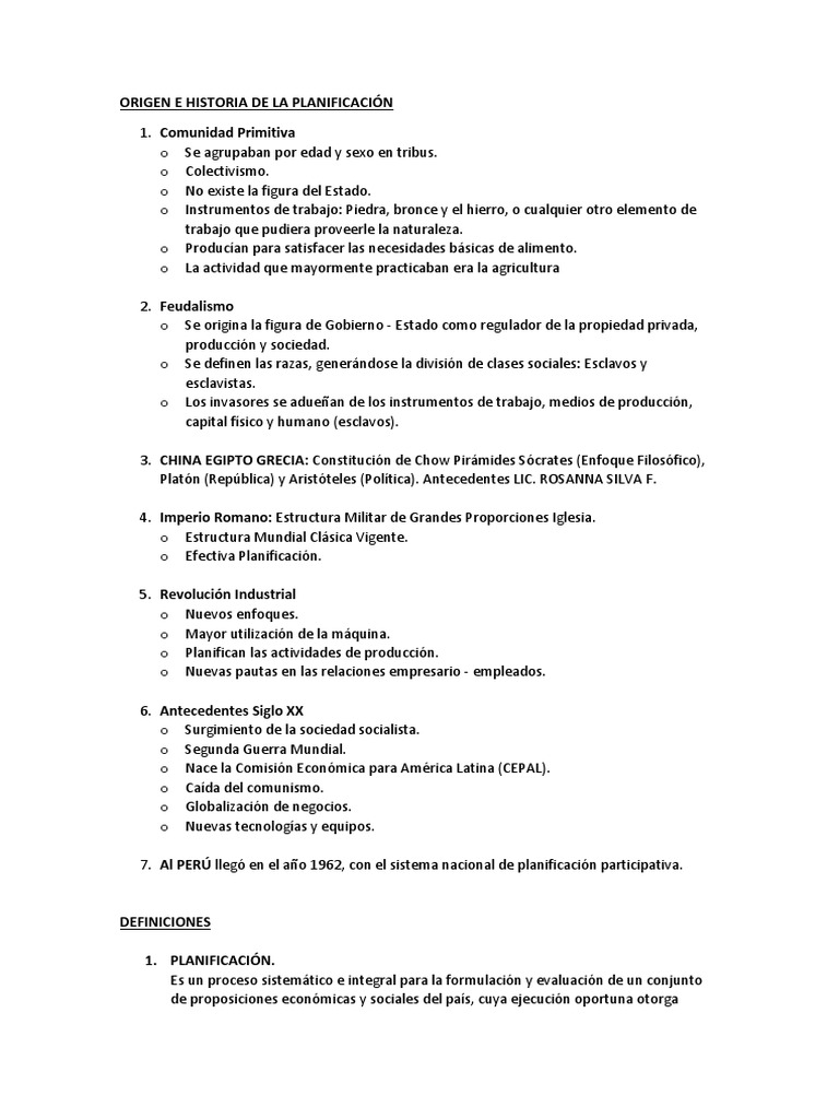 ORIGEN E HISTORIA DE LA PLANIFICACIN