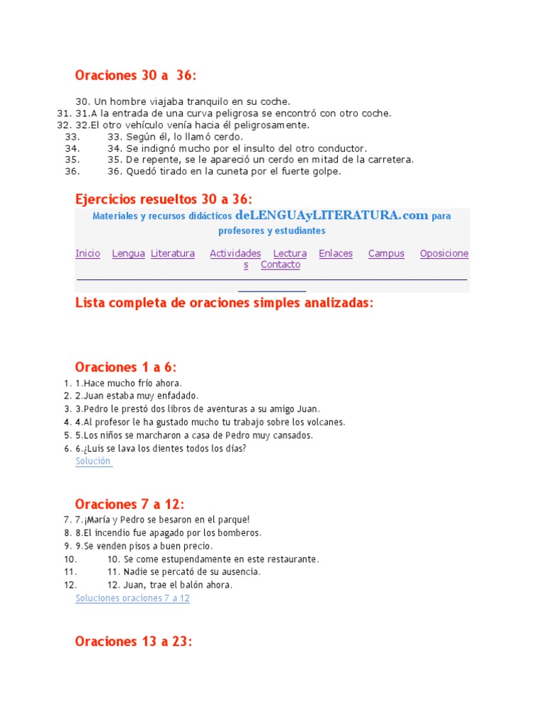 Oraciones 1 a 6:
