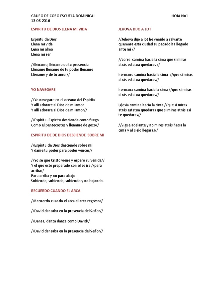 GRUPO DE CORO ESCUELA DOMINICAL HOJA No1