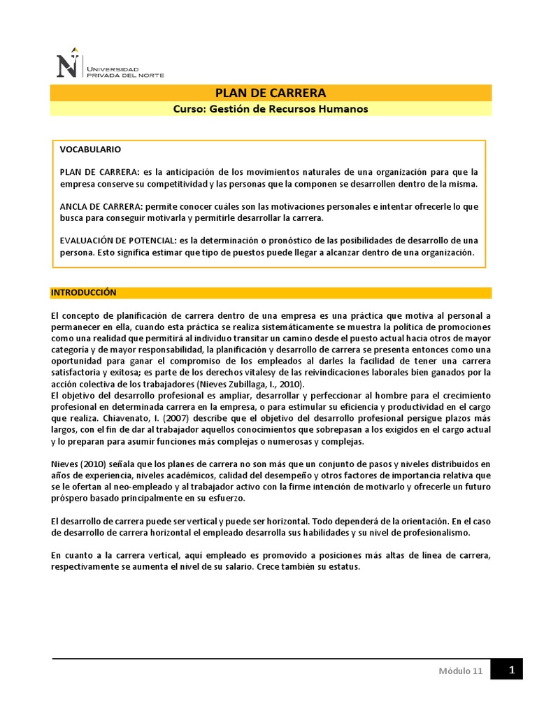 Nieves (2010) seala que los planes de carrera no son ms que un conjunto de pasos y niveles distribuidos en