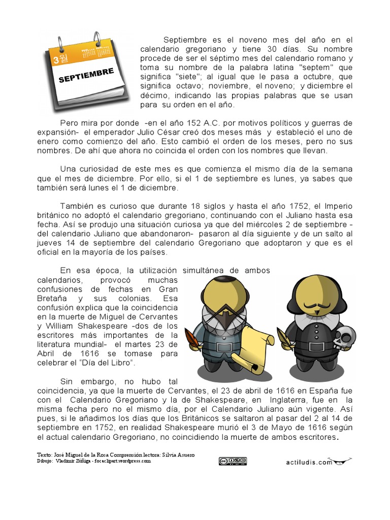 septiembre en 1752, en realidad Shakespeare muri el 3 de Mayo de 1616 segn